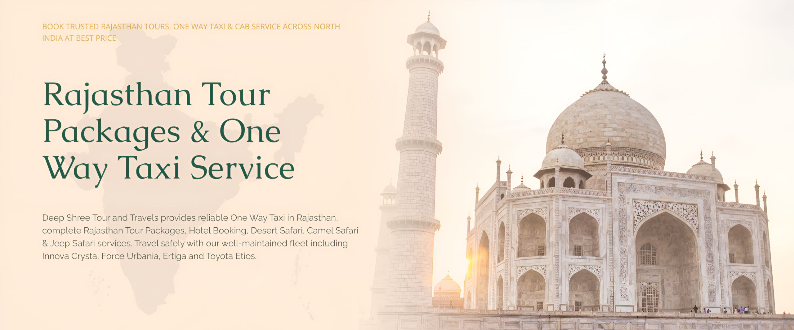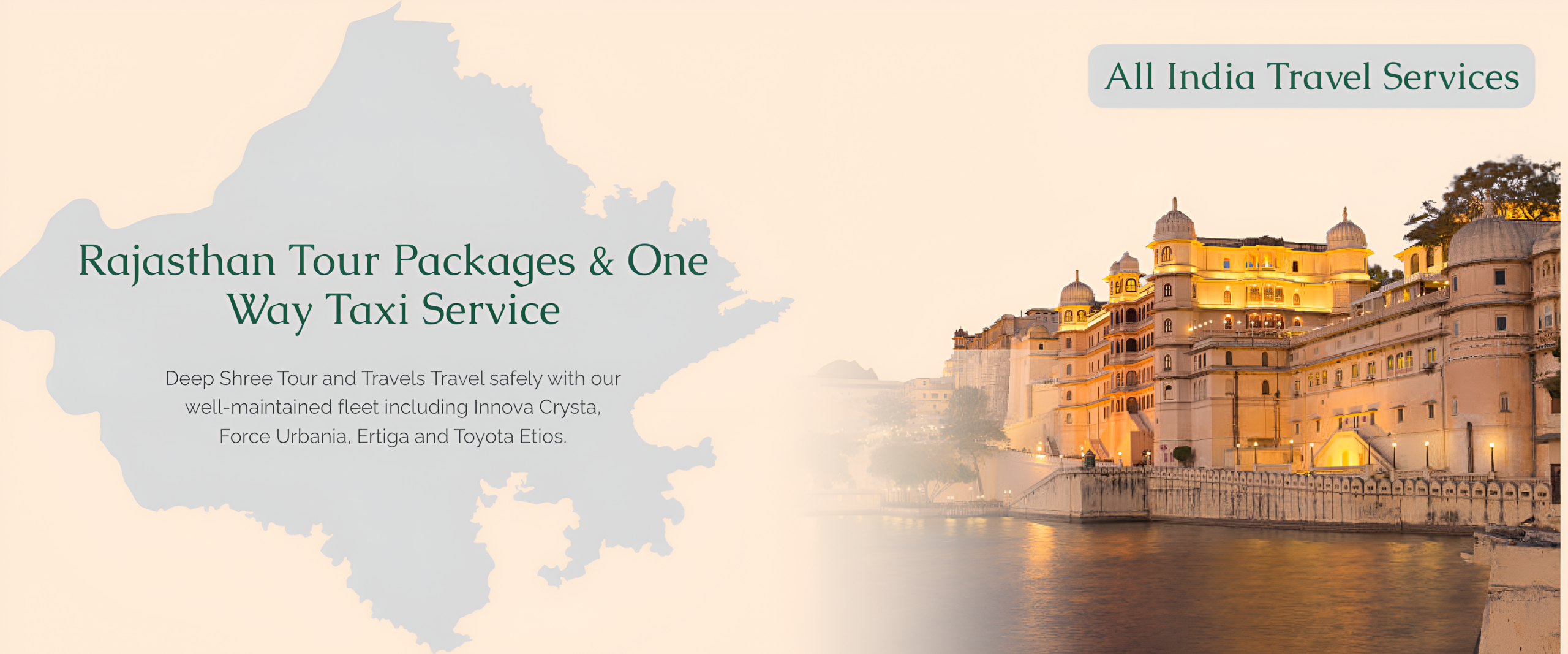 Explore reliable Rajasthan tour packages and one-way taxi services with Deep Shree Tour and Travels. We provide safe, affordable, and comfortable travel solutions including local sightseeing, outstation cabs, airport transfers, and customized holiday tours across Rajasthan and North India.
