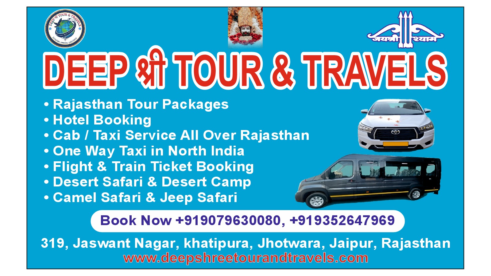 Looking for a trusted Rajasthan travel agency & taxi service?Deep Shree Tour & Travels is your reliable travel partner for safe, affordable & memorable journeys across Rajasthan & North India. Travel stress-free with our professional drivers, clean vehicles, and customized tour packages designed just for